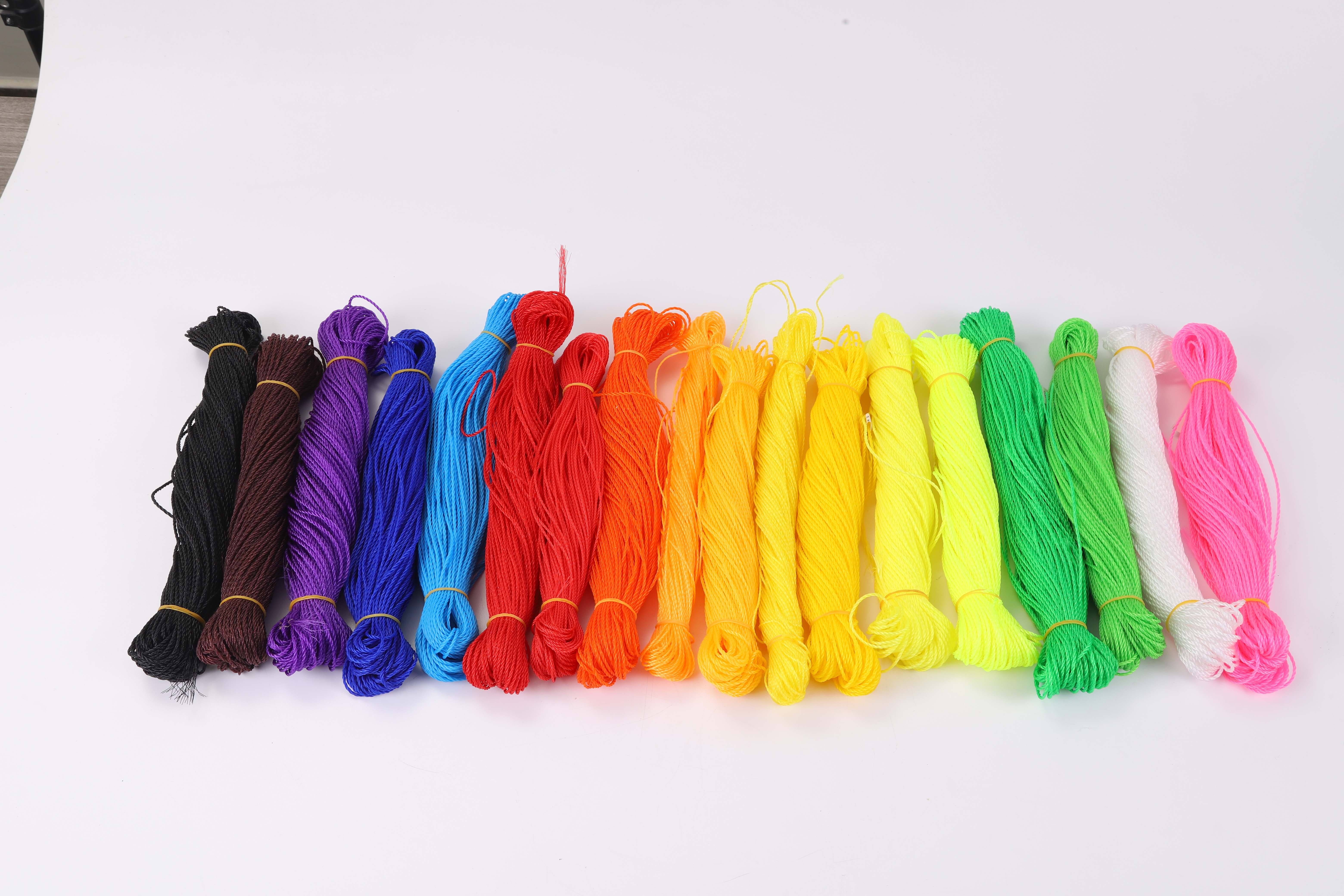 2. Size: 380D/3PLY, 6PLY, 9PLY, 12PLY, 15PLY, 18PLY, 24PLY, 27PLY, 30PLY, ......120PLY, generally speaking, the smaller the diameter, the higher the accuracy requirements of the production machine, so the price will be higher.